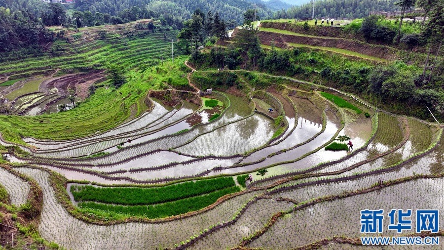 近日,江西省宜春市萬載縣高村鎮(zhèn)新竹村村民在高山梯田勞作,忙碌的身影與層層疊疊的梯田交相輝映。新華網(wǎng)發(fā) 鄧龍華 攝
