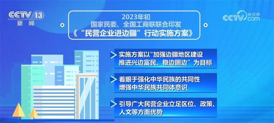 2023年初,國家民委、全國工商聯(lián)聯(lián)合印發(fā)了《“民營企業(yè)進邊疆”行動實施方案》,實施方案以“加強邊疆地區(qū)建設(shè),推進興邊富民、穩(wěn)邊固邊”為目標(biāo),著眼于強化中華民族的共同性、增強中華民族共同體意識,引導(dǎo)廣大民營企業(yè)立足區(qū)位、政策、人文等方面優(yōu)勢,積極參與邊疆地區(qū)基礎(chǔ)設(shè)施建設(shè),助力邊疆地區(qū)提升資源轉(zhuǎn)化能力,推動邊疆地區(qū)融入全國統(tǒng)一大市場,促進邊疆各民族交往交流交融,共同走向社會主義現(xiàn)代化,實現(xiàn)共同富裕。