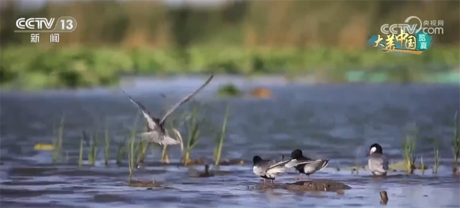 現(xiàn)在我們來到位于河北雄安新區(qū)安新縣白洋淀濕地,這里岸邊花香撲鼻、水波蕩漾、鷗鷺齊飛,在剛剛修復(fù)完工的藻苲淀,39座大小島嶼中有兩座還成為了鳥類保護的棲息地。