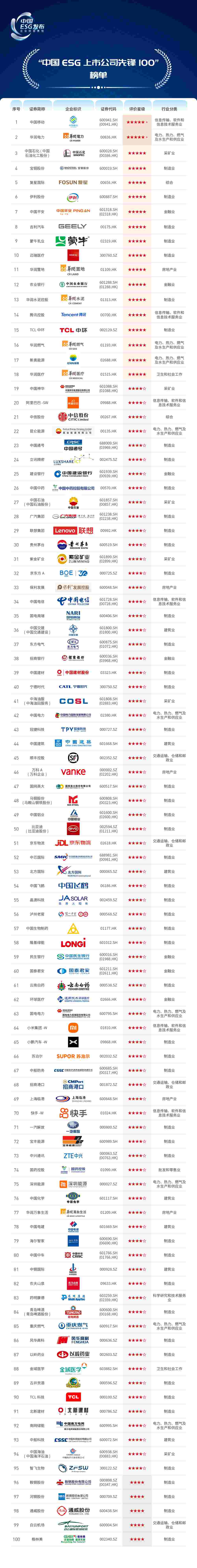 經(jīng)分析,中國移動、華潤電力、中國石化、寶鋼股份、復(fù)星國際、伊利股份、中國平安、吉利汽車、蒙牛乳業(yè)和邁瑞醫(yī)療等100家上市公司入選“中國ESG上市公司先鋒100”。