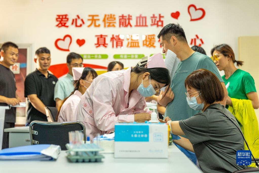 6月14日,市民在安徽省合肥市肥東縣血站無(wú)償獻(xiàn)血室進(jìn)行獻(xiàn)血前檢驗(yàn)。