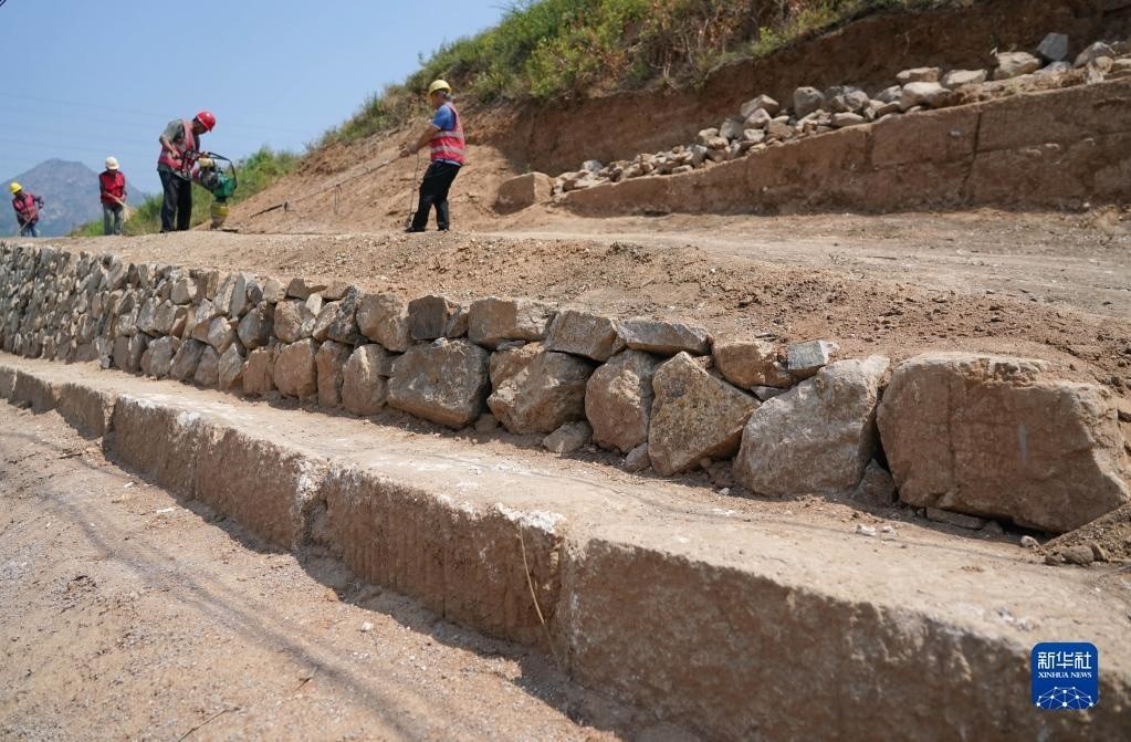 近日,河北省秦皇島市山海關區(qū)山海關長城保護展示工程——腰鋪9號敵臺和51號墻臺馬道保護修繕工程施工穩(wěn)步推進。據(jù)介紹,腰鋪9號敵臺和51號墻臺馬道是山海關長城軍事防御體系中重要的附屬設施。修繕工程預計7月底完工。新華社記者 楊世堯 攝