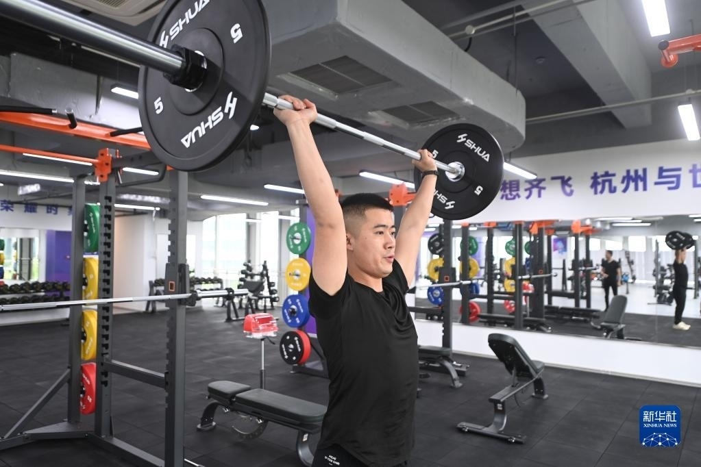6月16日,杭州亞運(yùn)村健身中心健身教練在綜合器械區(qū)展示。據(jù)了解,健身中心集合了營養(yǎng)管理、體能康復(fù)、疲勞恢復(fù)、運(yùn)動(dòng)心理等各領(lǐng)域的專業(yè)教練,將根據(jù)運(yùn)動(dòng)員實(shí)際情況,為運(yùn)動(dòng)員提供賽事服務(wù)保障。