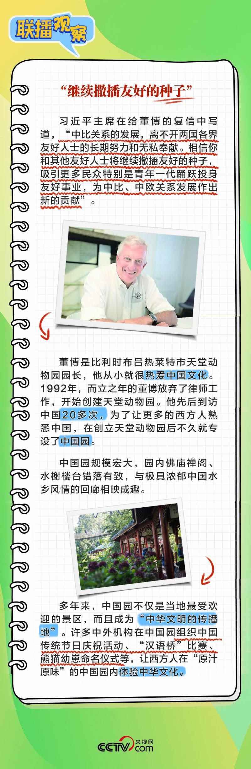 董博是比利時布呂熱萊特市天堂動物園園長,他在給習主席致信中回顧了習主席和夫人彭麗媛2014年3月訪比期間出席天堂動物園大熊貓園開園儀式的情景,表示中國園體現(xiàn)人與自然和諧共生理念,中國夢和中國的發(fā)展繁榮永遠是可共享的機遇。