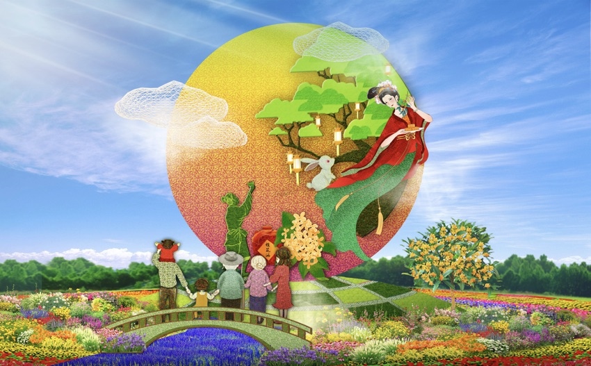 8,西單西北角的“花好月圓”花壇頂高8米,以一家人中秋團(tuán)聚的溫馨畫面為場(chǎng)景,體現(xiàn)了花好月圓下百姓幸福生活。