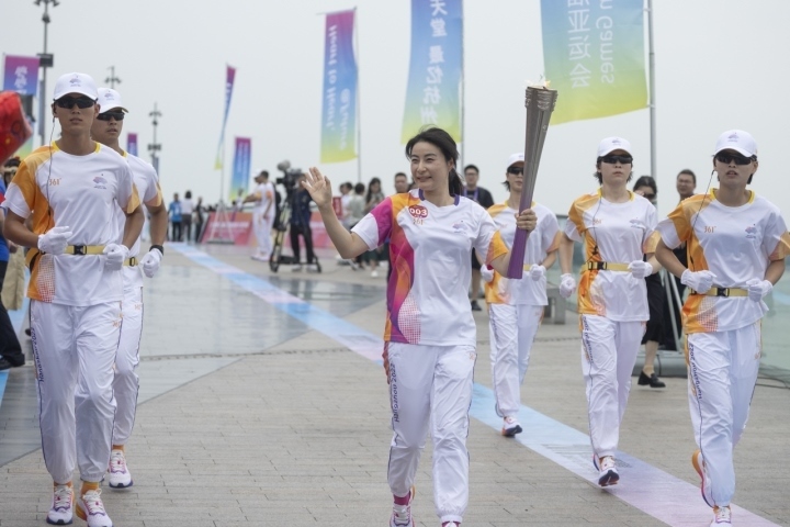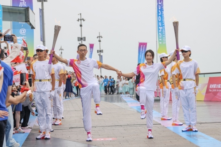 9月20日上午,杭州亞運會火炬?zhèn)鬟f杭州站起跑儀式在杭州城市陽臺舉行。