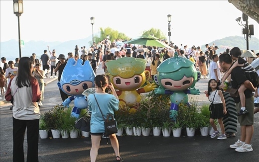 進(jìn)入“亞運(yùn)時(shí)刻”的杭州,地鐵公交換上“吉祥物限定皮膚”,剪紙、銅雕、竹編等民間版“江南憶”層出不窮……這座彌漫著濃濃亞運(yùn)氛圍的煥新古城,正通過被網(wǎng)友昵稱為“三小只”的吉祥物,向八方賓朋傳遞快樂與友愛。