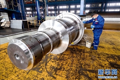 在位于黑龍江省齊齊哈爾市的中國(guó)一重生產(chǎn)車(chē)間內(nèi),工人正在進(jìn)行生產(chǎn)作業(yè)。