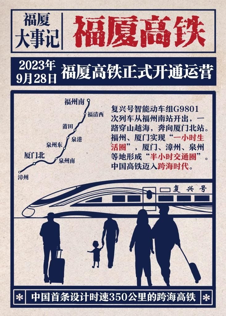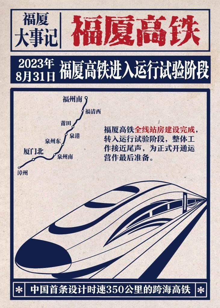 我國首條設(shè)計時速350公里的跨海高鐵——福廈高鐵正式開通運(yùn)營