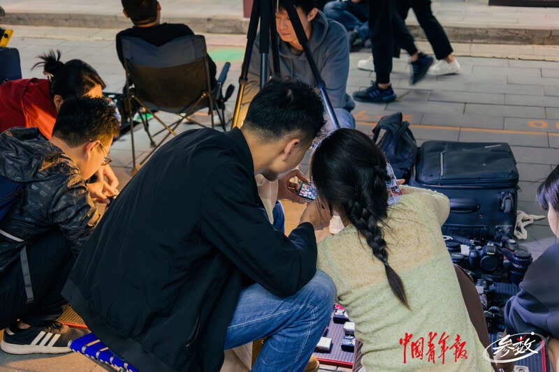 在西安,游客們?cè)凇按筇撇灰钩遣叫薪帧睒?biāo)識(shí)下,打卡拍照。中青在線記者 白楊/攝