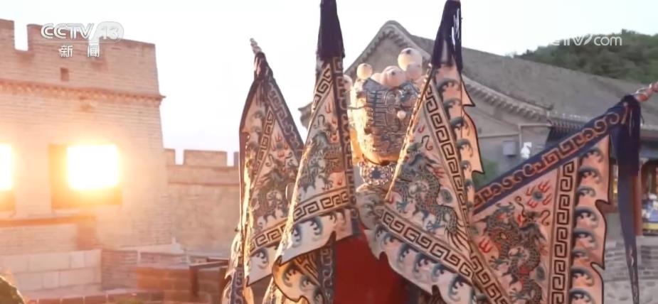 除了觀賞之外,八達(dá)嶺長(zhǎng)城還為游客提供了豐富的消費(fèi)體驗(yàn)。在文化街區(qū)里,正在上演《夢(mèng)回長(zhǎng)城,八方來(lái)鶴》為主題的演出,游客們可以和京劇、地方歌舞的表演者互動(dòng)。絢爛的燈光表演則為古老的長(zhǎng)城增添了不少現(xiàn)代感與時(shí)尚感。穿上漢服,買一面國(guó)旗,品嘗一下長(zhǎng)城的文創(chuàng)雪糕,市集小店里洋溢著濃濃的煙火氣。