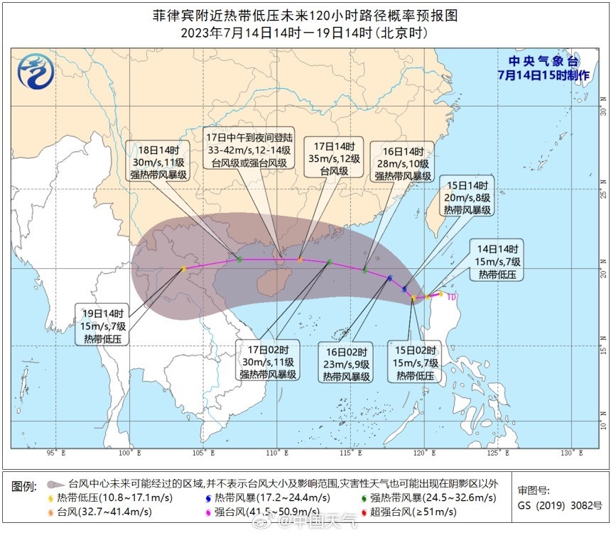 根據(jù)目前的預報,17日晚些時候,“泰利”會在廣東西部到海南北部沿海登陸,成為今年首個登陸我國的臺風,登陸時間較常年(1991年-2020年)初臺平均登陸時間(6月27日)偏晚20天左右。之后,它將會繼續(xù)向西移動,并可能登陸越南。胡嘯補充說,在“泰利”背后還會有熱帶低壓系統(tǒng)北上,有可能會影響臺風的登陸時間,還需要繼續(xù)觀察。