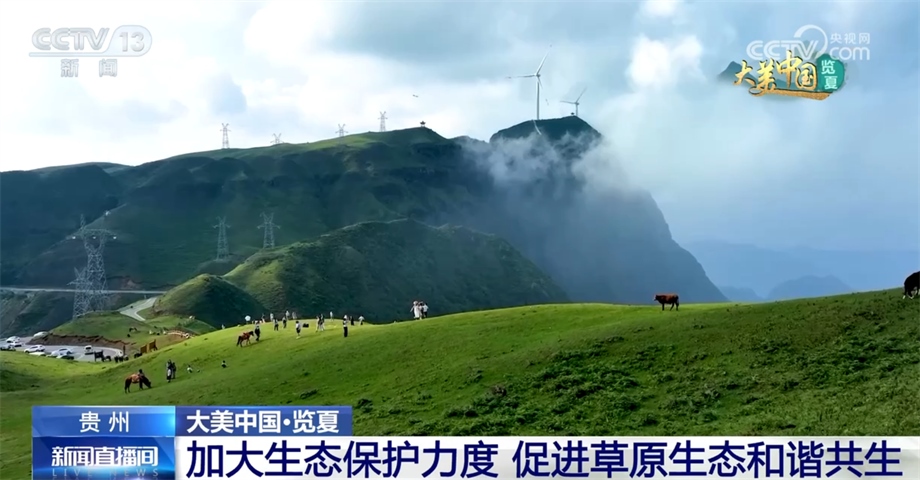 跟隨鏡頭,我們來到貴州六盤水盤州市的烏蒙大草原。眼下,正值盛夏的烏蒙大草原水草豐茂、碧綠如茵、牛羊成群,從空中俯瞰,縹緲的云霧將草原裝扮得十分夢幻。烏蒙大草原最高海拔2857米。因?yàn)榈靥幐吆0蔚貐^(qū),這里的氣候適宜,吸引了許多游客來到這里避暑旅游。近年來,當(dāng)?shù)丶哟髮Υ迕窈陀慰偷男麄饕龑?dǎo)力度,并采取措施限制過度放牧,嚴(yán)厲打擊采挖野生高原矮杜鵑和駕車碾壓草地等行為,保護(hù)草原生態(tài)平衡,維護(hù)生物多樣性,讓烏蒙大草原生態(tài)持續(xù)向好,實(shí)現(xiàn)人與自然和諧共生。