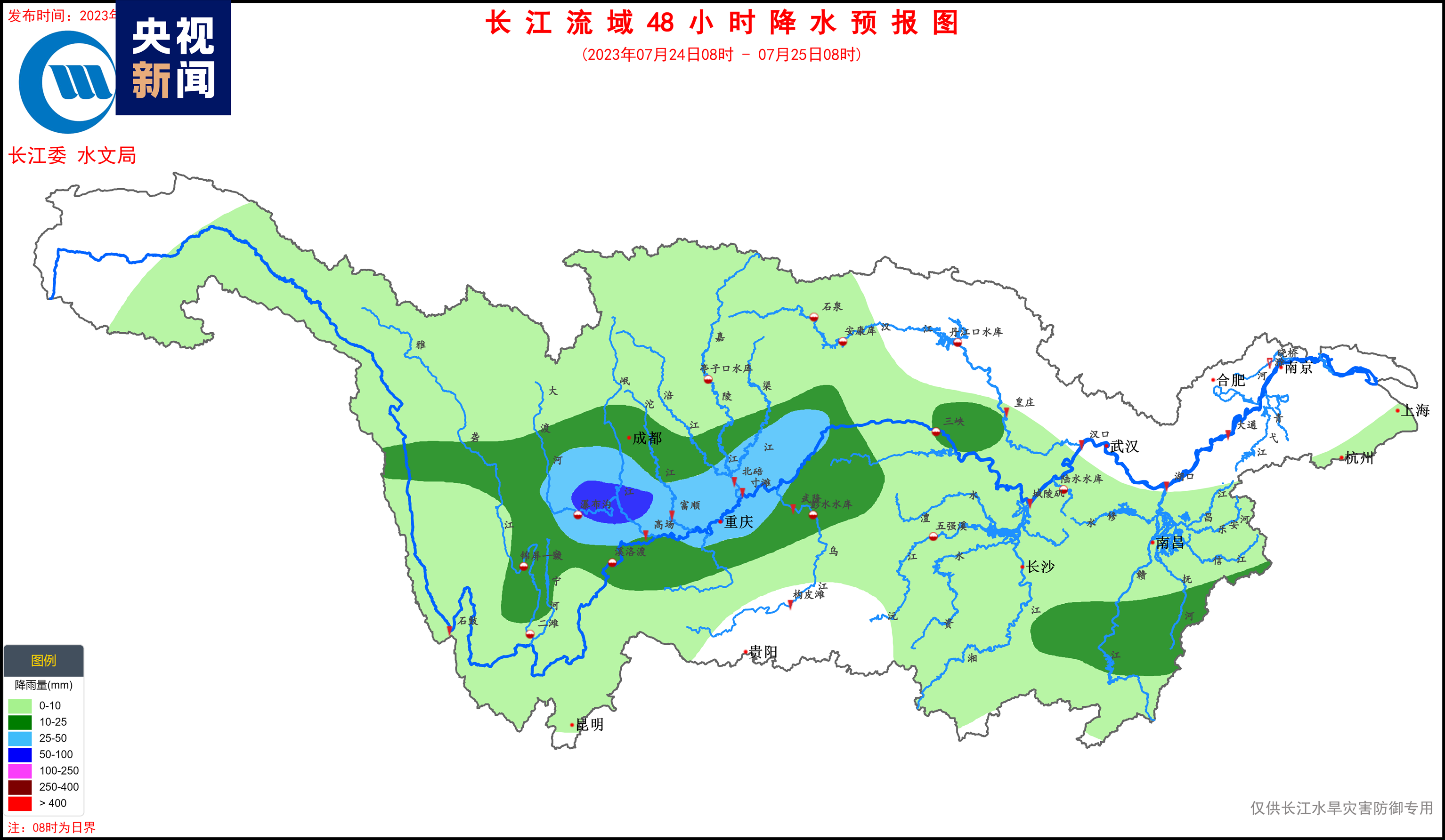 為切實(shí)做好洪水防御工作,長江防總、長江委于7月23日分別發(fā)布汛情通報(bào),要求四川、重慶、貴州等地務(wù)必高度警惕。