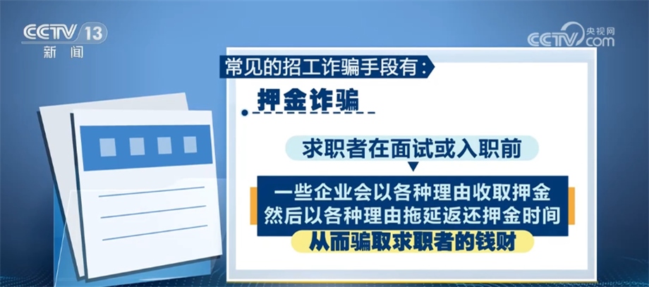 押金詐騙。求職者在面試或入職前,一些企業(yè)會(huì)以各種理由收取押金,然后以各種理由拖延返還押金時(shí)間,從而騙取求職者的錢財(cái)。
