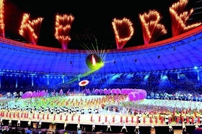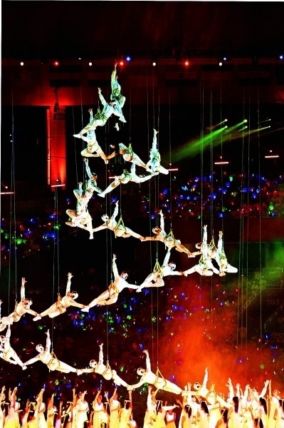 成都大運(yùn)會(huì)開幕式現(xiàn)場(chǎng)的文藝演出。本報(bào)記者 郭俊鋒攝/光明圖片