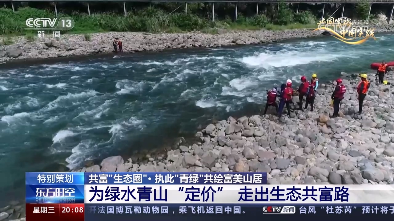 工作人員正在檢測溪水水質(zhì),為GEP中“水質(zhì)凈化”指標采集數(shù)據(jù)。