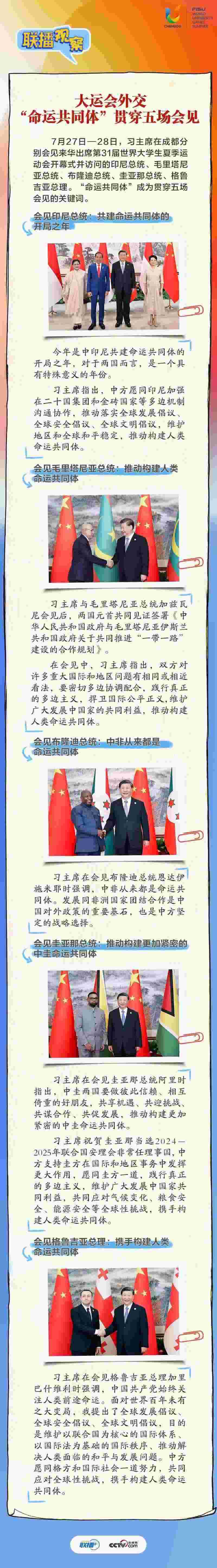 大運(yùn)會(huì)時(shí)間,我國(guó)重要的主場(chǎng)外交也同步拉開(kāi)帷幕,習(xí)近平主席的日程格外繁忙。央視網(wǎng)《聯(lián)播+》帶您沉浸式感受這場(chǎng)青春盛會(huì)為世界送出的別具匠心的“四川禮物”。