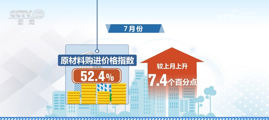 7月份,原材料購(gòu)進(jìn)價(jià)格指數(shù)為52.4%,較上月上升7.4個(gè)百分點(diǎn),結(jié)束了連續(xù)三個(gè)月運(yùn)行在50%以下的勢(shì)頭。制造業(yè)生產(chǎn)用原材料價(jià)格總體水平有所上升。