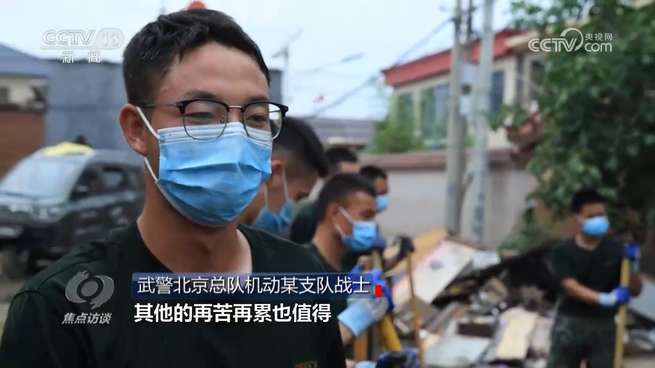 從7月31日接到命令以來,武警北京總隊機(jī)動某支隊就派出1450人奮戰(zhàn)在一線,前期參與救援,現(xiàn)在是災(zāi)后清淤,每天都要工作十小時以上。