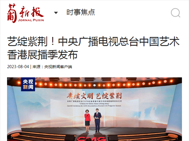 近期,中央廣播電視總臺CGTN紀錄頻道“賡續(xù)文明 藝綻紫荊”中國藝術香港展播季在京港兩地共同發(fā)布。30余部展現中華優(yōu)秀傳統文化的總臺紀錄片、專題片正陸續(xù)通過CGTN紀錄頻道在香港播出。