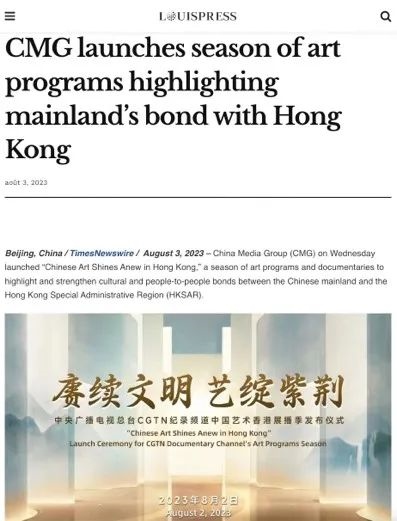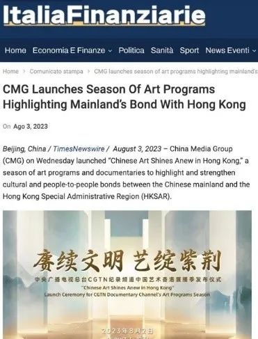 總臺CGTN在官網發(fā)布的《中國藝術香港展播季 讓觀眾零距離觸摸源遠流長的中華文明》稿件被來自美國、英國、法國、澳大利亞、韓國、加拿大、意大利等20個國家和地區(qū)的799家海外主流網絡媒體轉載。美國《國際日報》《歐洲僑報》《葡新報》《非洲時報》《委國僑報》、新西蘭格局傳媒網站、歐僑網和日本華商網等海外華文媒體也以多種形式刊載轉發(fā)了相關報道。