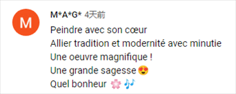 法語網友M*A*G*:“用心作畫,將傳統與現代結合,華麗的作品,偉大的智慧,這是多么幸福的一件事??!”