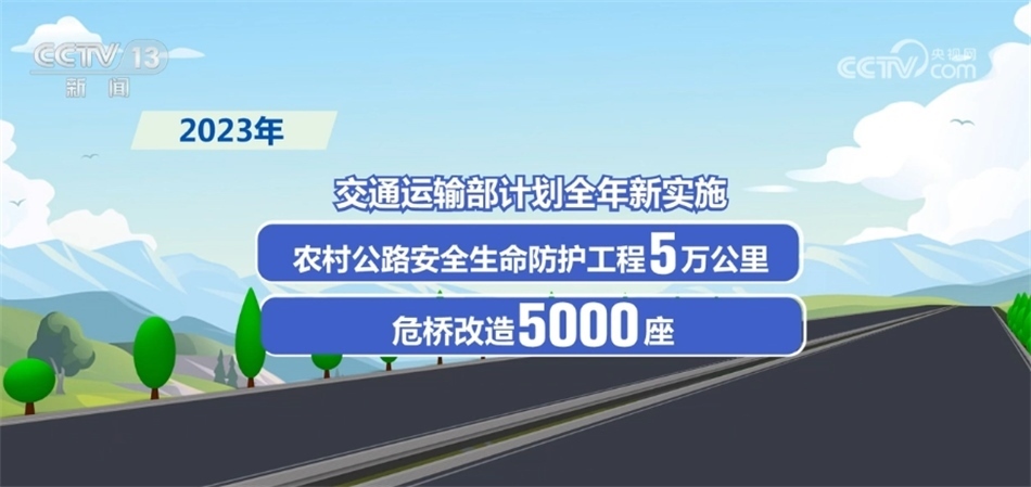 交通運(yùn)輸部今天發(fā)布數(shù)據(jù),“十三五”以來(lái),全國(guó)共完成農(nóng)村公路安全生命防護(hù)工程99萬(wàn)公里;改造農(nóng)村公路危橋4.4萬(wàn)余座,農(nóng)村公路危橋比例從2015年底的14.6%降至2022年底的2.8%。