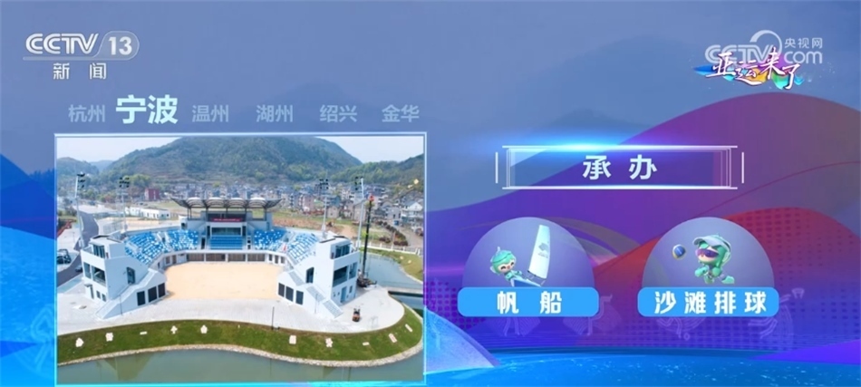 寧波設(shè)2個(gè)場(chǎng)館和1個(gè)亞運(yùn)分村,承辦帆船和沙灘排球項(xiàng)目;溫州設(shè)3個(gè)場(chǎng)館和1個(gè)亞運(yùn)分村,承辦足球小組賽和龍舟項(xiàng)目;湖州設(shè)2個(gè)競(jìng)賽場(chǎng)館,承辦排球和三人制籃球項(xiàng)目;紹興設(shè)4個(gè)場(chǎng)館,承辦籃球、排球、攀巖、棒壘球項(xiàng)目;金華設(shè)3個(gè)場(chǎng)館和1個(gè)亞運(yùn)分村,承辦足球小組賽和藤球項(xiàng)目。