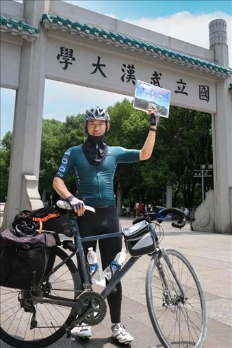 2023年是云南昆明小伙文迪與武漢大學(xué)相遇的年份,2023公里是文迪的家鄉(xiāng)到武大的距離?!斑@是我一直以來的夢想”文迪說,在初中時(shí),他讀到大學(xué)新生騎行報(bào)到的故事,從此下定決心,未來考上大學(xué)后“考到哪里,就騎到哪里”。今年高考,文迪被武大資源與環(huán)境科學(xué)學(xué)院空間信息與國土資源專業(yè)錄取,從云貴高原到荊楚大地,文迪一路騎行,來了一場特別的新生報(bào)到之旅!8月21日,這場既是旅游又是“流浪”的旅途終于結(jié)束,文迪也來到了珞珈山下,即將在這座最美大學(xué)校園里開始四年的大學(xué)生活。