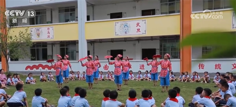 在湖南省永州市蘋洲小學(xué),一場(chǎng)花鼓戲表演正在進(jìn)行。學(xué)生們化身“小戲骨”,把“唱念做打”基本功表現(xiàn)得淋漓盡致?;ü膽蚴菄?guó)家非物質(zhì)文化遺產(chǎn)之一,今年暑假,永州市蘋洲小學(xué)將學(xué)唱花鼓戲作為學(xué)生的暑假作業(yè)之一,學(xué)生們自行組隊(duì)進(jìn)行排練,開(kāi)學(xué)第一課就成了孩子們展示暑假作業(yè)的表演專場(chǎng)。