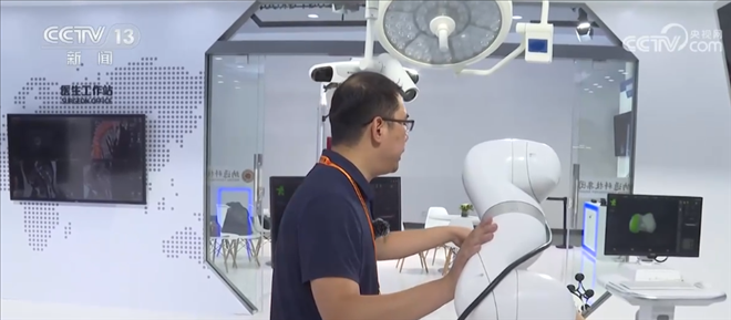 總臺(tái)記者 王豐:這里主要呈現(xiàn)的是一個(gè)智能手術(shù)室的系統(tǒng),這是一套幫助醫(yī)生進(jìn)行精準(zhǔn)手術(shù)計(jì)劃的設(shè)備,比如說(shuō)我們可以利用一張X光片,一張CT或者一張核磁影像,就可以還原出一個(gè)3D的影像,醫(yī)生通過(guò)3D的建模,可以精準(zhǔn)地看到病灶所在的位置,包括他如何下刀,來(lái)精準(zhǔn)地制定手術(shù)計(jì)劃。