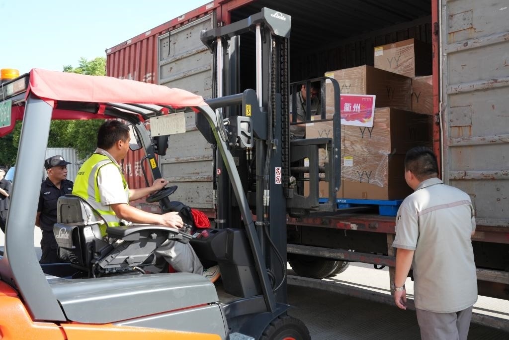 9月4日,工作人員將火炬裝車運(yùn)往各地。新華社記者 翁忻旸 攝