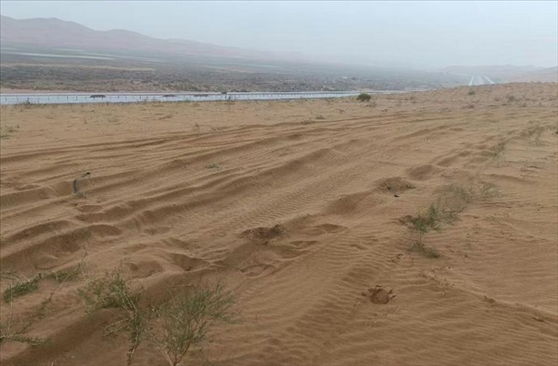 ·騰格里沙漠大量治沙花棒遭越野車碾壓,輪胎印清晰可見。目前工作人員已趕往現(xiàn)場,具體破壞程度和損失還在統(tǒng)計中。