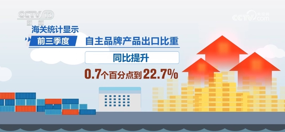 海關(guān)統(tǒng)計(jì)顯示,前三季度,我國民營企業(yè)月度進(jìn)出口增速高于整體,自主品牌產(chǎn)品出口比重同比提升0.7個(gè)百分點(diǎn)到22.7%。