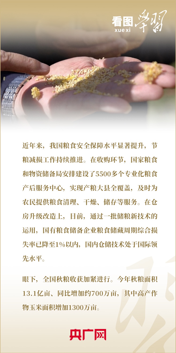 糧食安全是“國之大者”。黨的十八大以來,習(xí)近平總書記在地方考察調(diào)研期間,常常走進(jìn)田間地頭,看長勢、問收成,多次強(qiáng)調(diào)“中國人的飯碗任何時候都要牢牢端在自己手中”,“保障糧食安全,要在增產(chǎn)和減損兩端同時發(fā)力”。讓14億多人吃飽吃好,總書記始終念茲在茲。今天是世界糧食日,一起來學(xué)習(xí)!