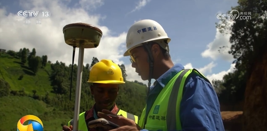 這里是肯尼亞南部高原上的錫卡鎮(zhèn)基戈羅村,施工團(tuán)隊(duì)正在鋪設(shè)供水管線,將壩區(qū)的水引入內(nèi)羅畢城區(qū),解決首都近300萬人的用水問題。正在進(jìn)行測量工作的中國工程師叫于春雨,旁邊的肯尼亞小伙子是他的徒弟叫王約翰。