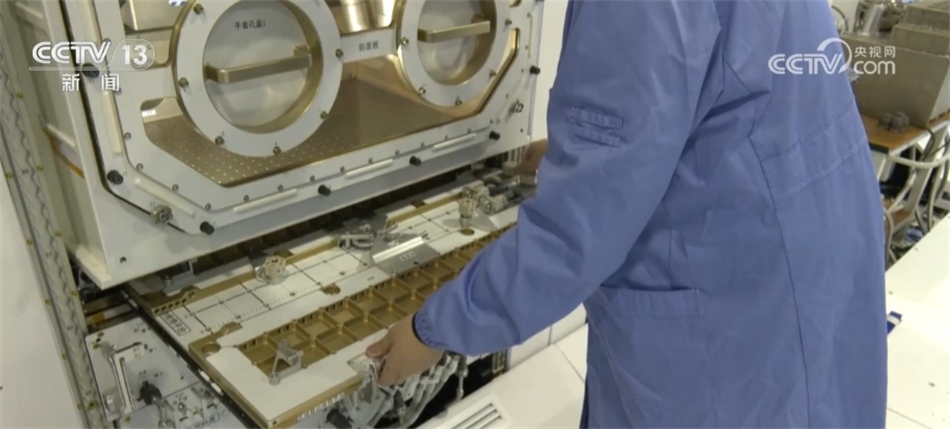 ?????? 中國科學(xué)院空間應(yīng)用工程與技術(shù)中心研究員 張璐:這里面,我們主要是進(jìn)行一些比如說小載荷、標(biāo)準(zhǔn)載荷的維修操作,包括有一些有密閉要求的載荷,我們可以通過更換手套進(jìn)行操作。艙外有一些大型載荷有一些安裝、升級(jí)甚至拆裝的操作,我們可以通過這個(gè)移動(dòng)維修平臺(tái),把這個(gè)平臺(tái)拉開以后,它可以展開成一個(gè)大概900毫米x700毫米的一個(gè)大平板。艙外的這些大載荷可以在這個(gè)大平板上安裝固定,然后航天員在這個(gè)平板上結(jié)合內(nèi)部豐富的各種載荷的接口,來進(jìn)行相應(yīng)的維修操作。