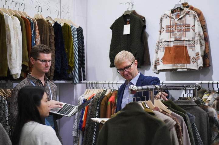 10月31日,外國采購商在服裝展區(qū)參觀洽談。新華社記者 鄧華 攝