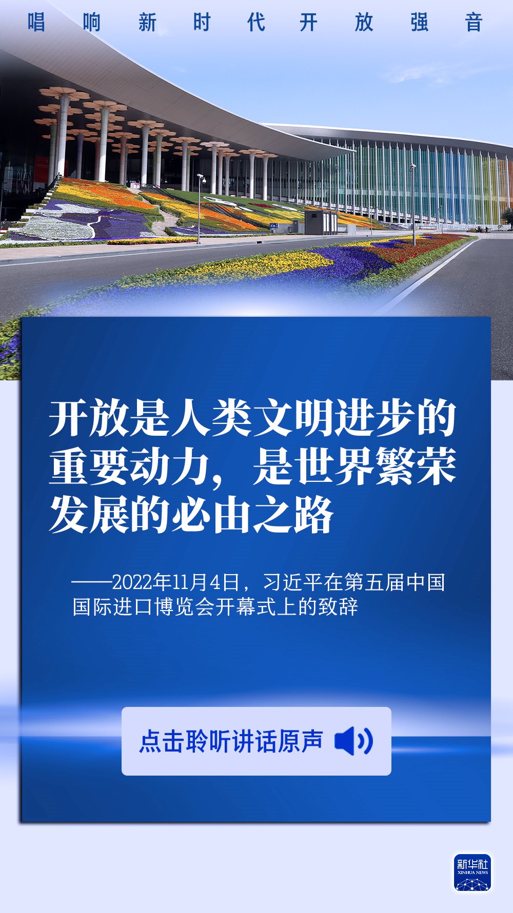 開(kāi)放是當(dāng)代中國(guó)的鮮明標(biāo)識(shí)。習(xí)近平主席說(shuō),舉辦中國(guó)國(guó)際進(jìn)口博覽會(huì),是中國(guó)著眼于推動(dòng)新一輪高水平對(duì)外開(kāi)放作出的重大決策,是中國(guó)主動(dòng)向世界開(kāi)放市場(chǎng)的重大舉措。習(xí)主席在歷屆進(jìn)博會(huì)上的重要講話,發(fā)出開(kāi)放合作的時(shí)代強(qiáng)音,為建設(shè)開(kāi)放型世界經(jīng)濟(jì)注入正能量。
