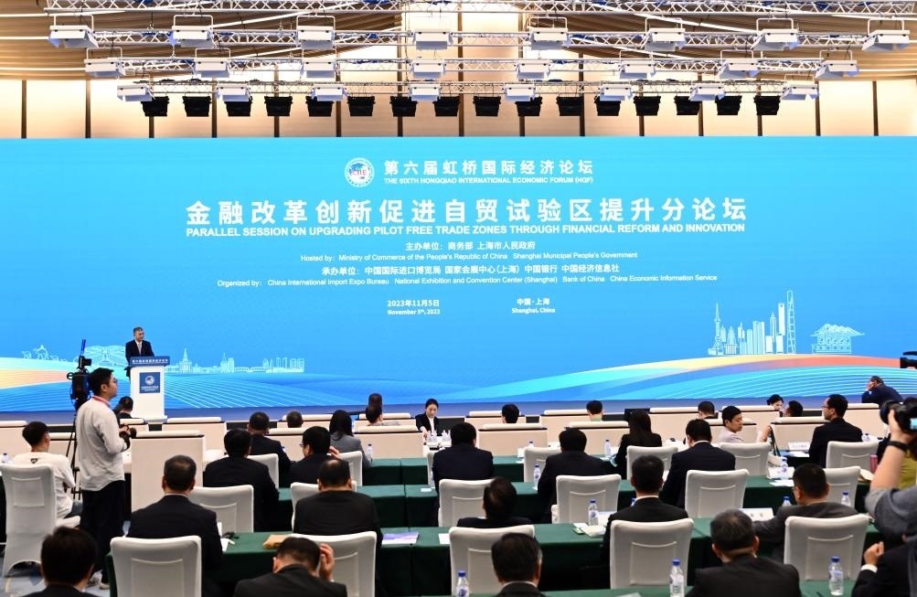 ?11月5日,第六屆虹橋國(guó)際經(jīng)濟(jì)論壇《世界開(kāi)放報(bào)告2023》發(fā)布暨國(guó)際研討會(huì)在國(guó)家會(huì)展中心(上海)舉行。新華社記者 孟濤 攝