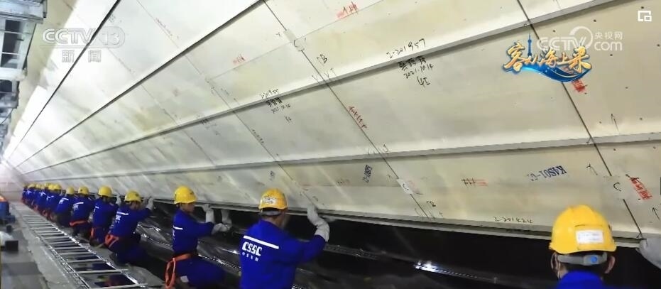總臺央視記者 李琳:我現(xiàn)在就來到了一艘正在建造的LNG運(yùn)輸船最核心的液貨艙部分,您看我腳下這種銀光閃閃的鋼板就是能夠承受-163℃的殷瓦鋼,這種薄如紙片的鋼材在2017年以前是不能實現(xiàn)國產(chǎn)的。