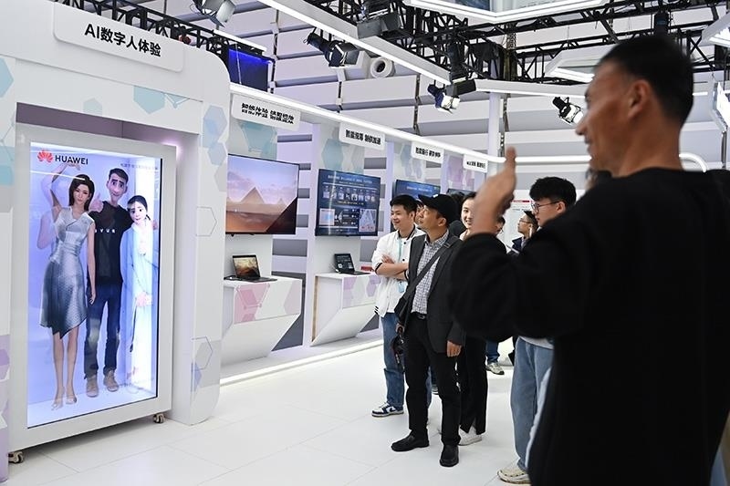 △2023年11月7日,2023年世界互聯(lián)網(wǎng)大會(huì)“互聯(lián)網(wǎng)之光”博覽會(huì)在浙江烏鎮(zhèn)開(kāi)幕。圖為觀眾在展臺(tái)體驗(yàn)與AI數(shù)字人合影。