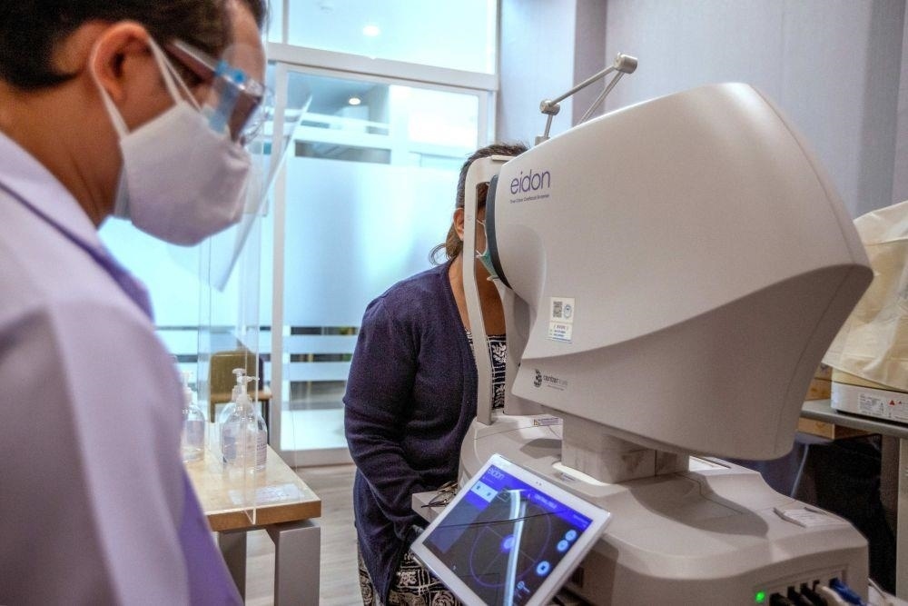 △2022年2月14日,在泰國(guó)曼谷詩(shī)里拉吉醫(yī)院,一名醫(yī)生操作5G自動(dòng)驗(yàn)光儀為患者檢查。2021年12月,5G智慧醫(yī)院項(xiàng)目在詩(shī)里拉吉醫(yī)院?jiǎn)?dòng)。