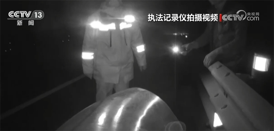再來看前些天發(fā)生在京臺(tái)高速山東德州段的這一幕。晚上八點(diǎn)多,德州高速交警在轄區(qū)巡查時(shí),發(fā)現(xiàn)在京臺(tái)高速往濟(jì)南方向的這一處內(nèi)側(cè)行車道上,掉落了一個(gè)大型管道,前方不遠(yuǎn)處有一輛大型貨車正停在應(yīng)急車道內(nèi),而貨車駕駛?cè)苏驹谥醒胱o(hù)欄內(nèi),用手電筒提醒過往車輛。由于晚上途經(jīng)的大都是大型車輛,夜間視距較差,情況十分危險(xiǎn),現(xiàn)場(chǎng)交警分工配合,通過多次嘗試終于跑到了遺落物的旁邊進(jìn)行處置。