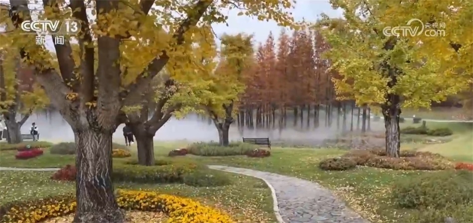 ?????? 銀杏湖位于南京江寧區(qū),山水秀美,每到深秋和初冬,這里都會被各種彩葉樹種裝點得五彩斑斕、如詩如畫。