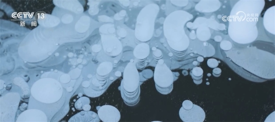 據(jù)了解,“冰泡”形成的主要原因是湖中茂盛的水草在衰敗腐爛之后釋放出沼氣。冬季,在氣源充足的情況下,當氣溫從0℃跌落至零下20℃后,一個個上升的氣泡還來不及“跑”出湖面,便被冰封在湖水之中。