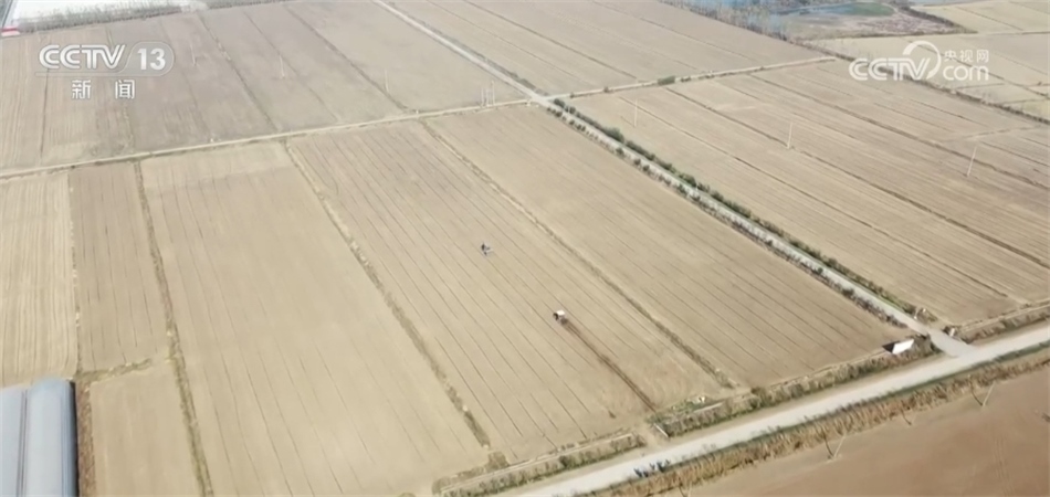 在山東臨沂郯城縣歸昌農(nóng)場的冬小麥種植田里,拖拉機(jī)、播種機(jī)等農(nóng)業(yè)機(jī)械在田間作業(yè),一粒粒麥種隨著播種機(jī)的上下翻動被種進(jìn)土地里。