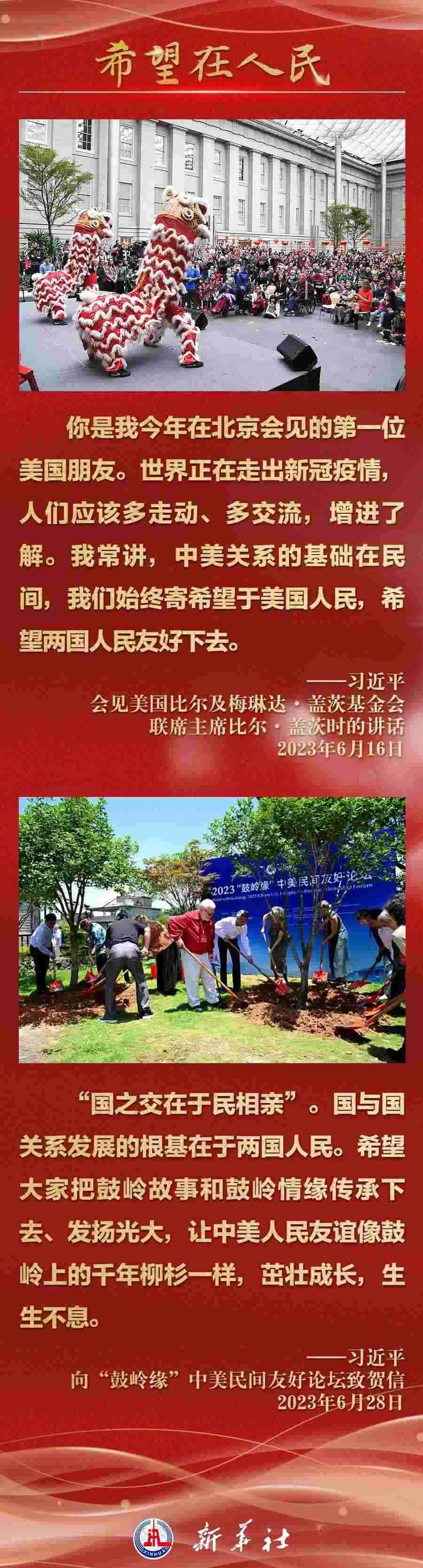 今年以來,從在京會見美國各界人士,到向“鼓嶺緣”中美民間友好論壇等活動致賀信,再到復(fù)信美國華盛頓州“美中青少年學(xué)生交流協(xié)會”、史迪威將軍后人、飛虎隊(duì)老兵等友好人士,習(xí)近平主席同美國各界真摯互動,強(qiáng)調(diào)中美關(guān)系基礎(chǔ)在民間,希望在人民,未來在青年,活力在地方。