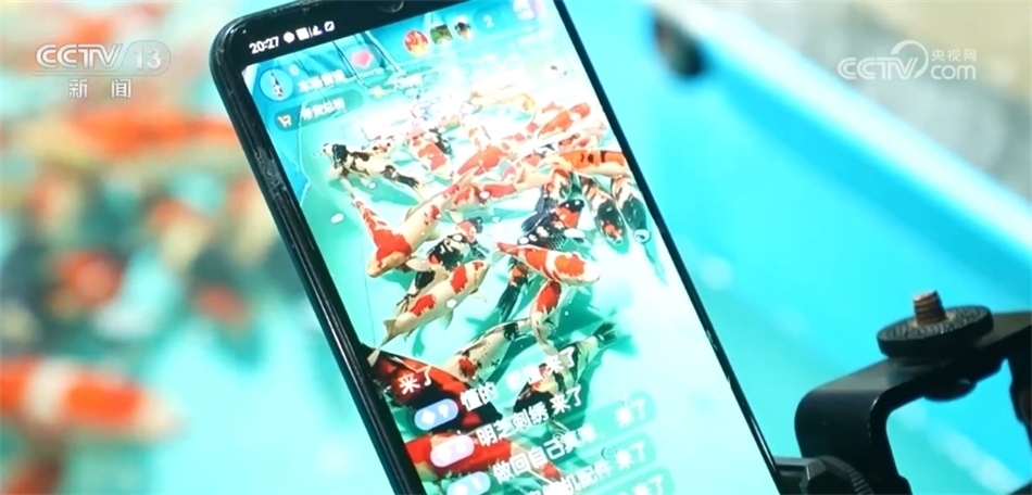 夜幕降臨,向寨村的許多錦鯉銷售商還在忙著直播。